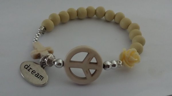 | Omschrijving: | Armband |beige| met peace-kraal |